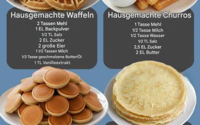 Waffeln Zutaten: 240 g Mehl 1 EL Backpulver (12 g) ½ TL Salz (3 g) 2 EL Zucker (25 g)…